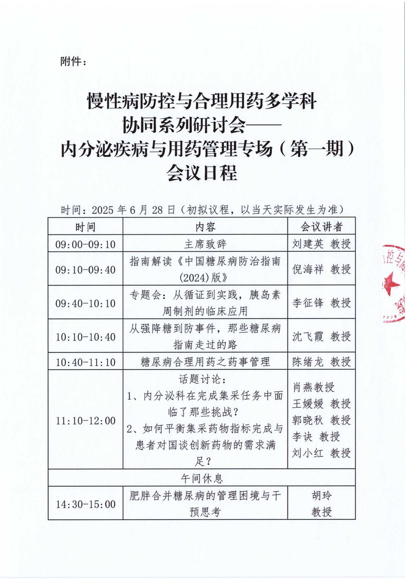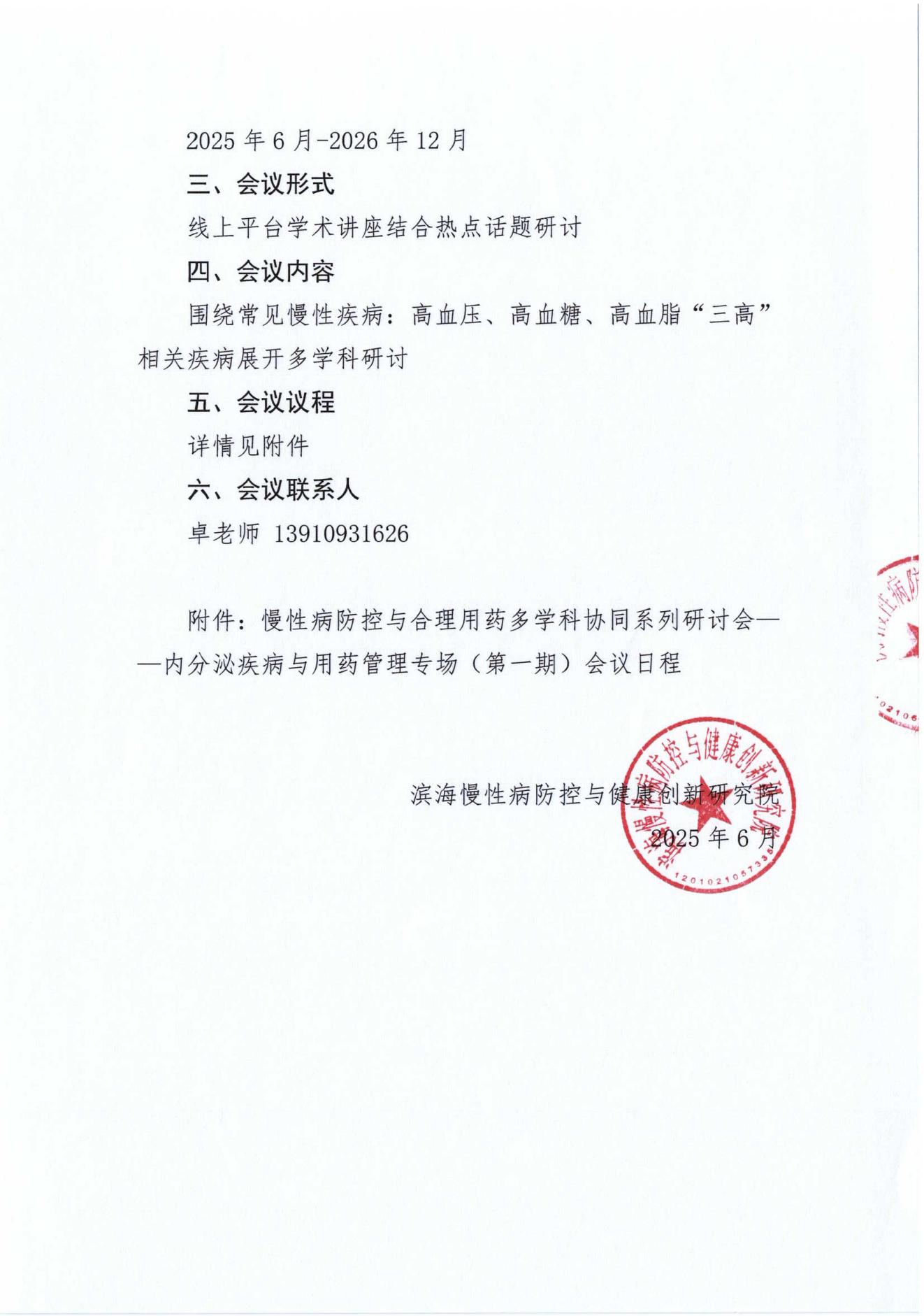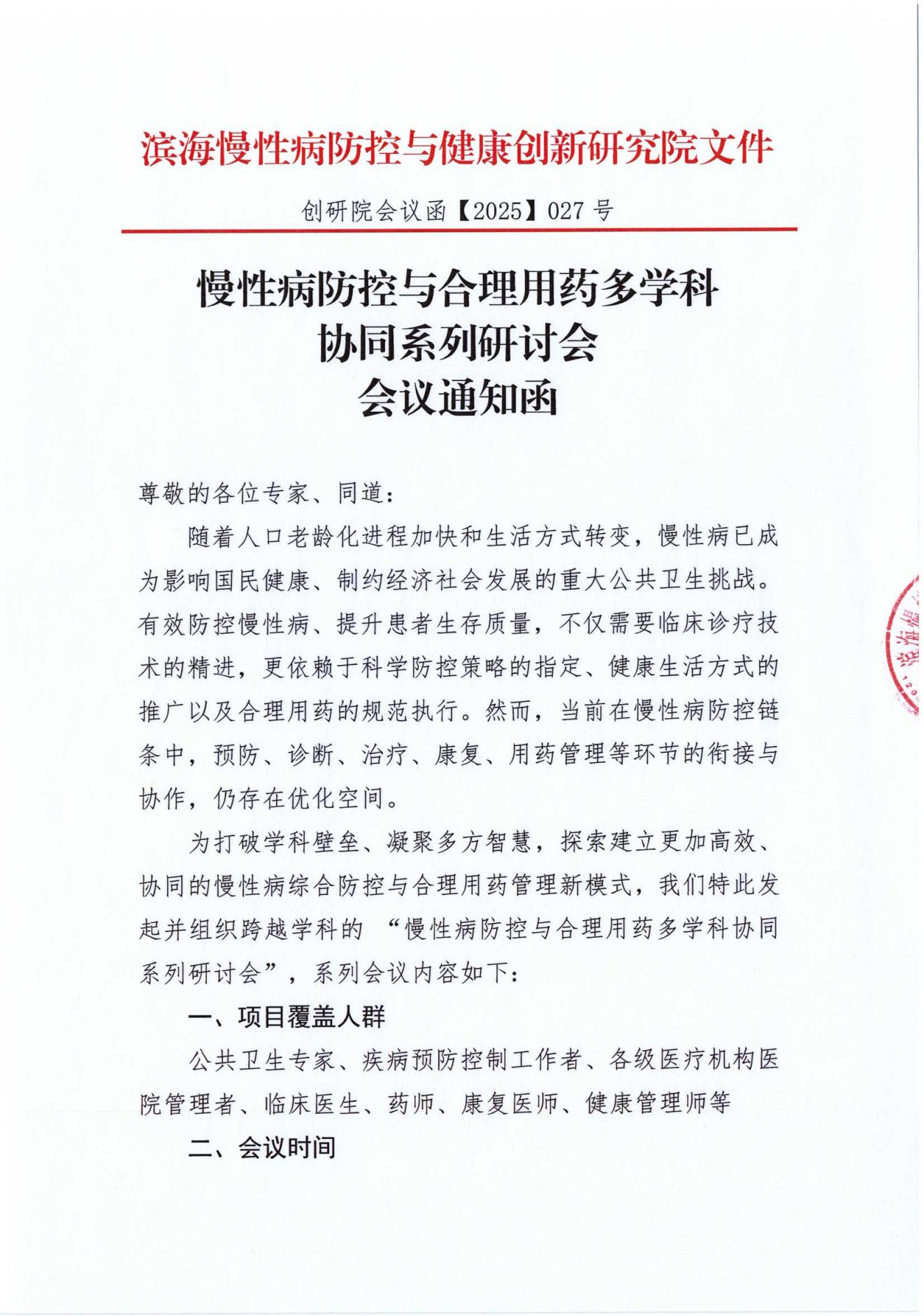 慢性病防控与合理用药多学科协同系列研讨会会议通知函(创研院会议函【2025】027号)