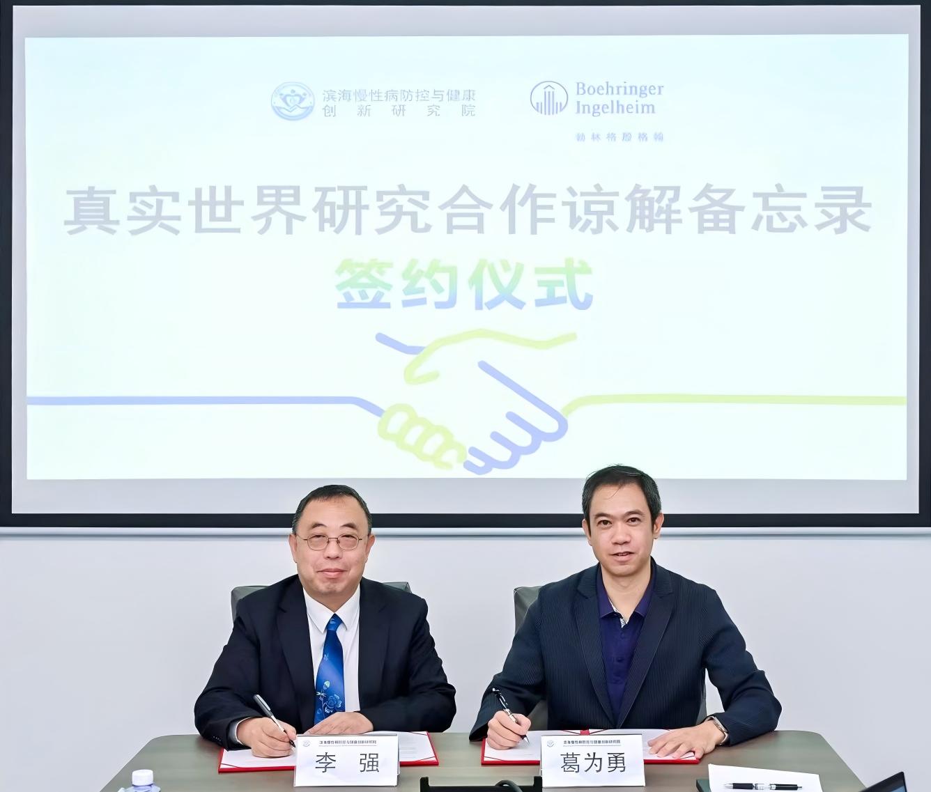 2025年9月22日,勃林格殷格翰大中华区研发和医学负责人张维、全球真实世界证据分析卓越中心负责人Paul Petraro、大中华区真实世界证据部门负责人李强等一行人到我院开展座谈,并就“真实世界研究合作谅解备忘录”进行签约。滨海慢病创研院执行院长葛为勇、数据中心主任张万春等人参加座谈。