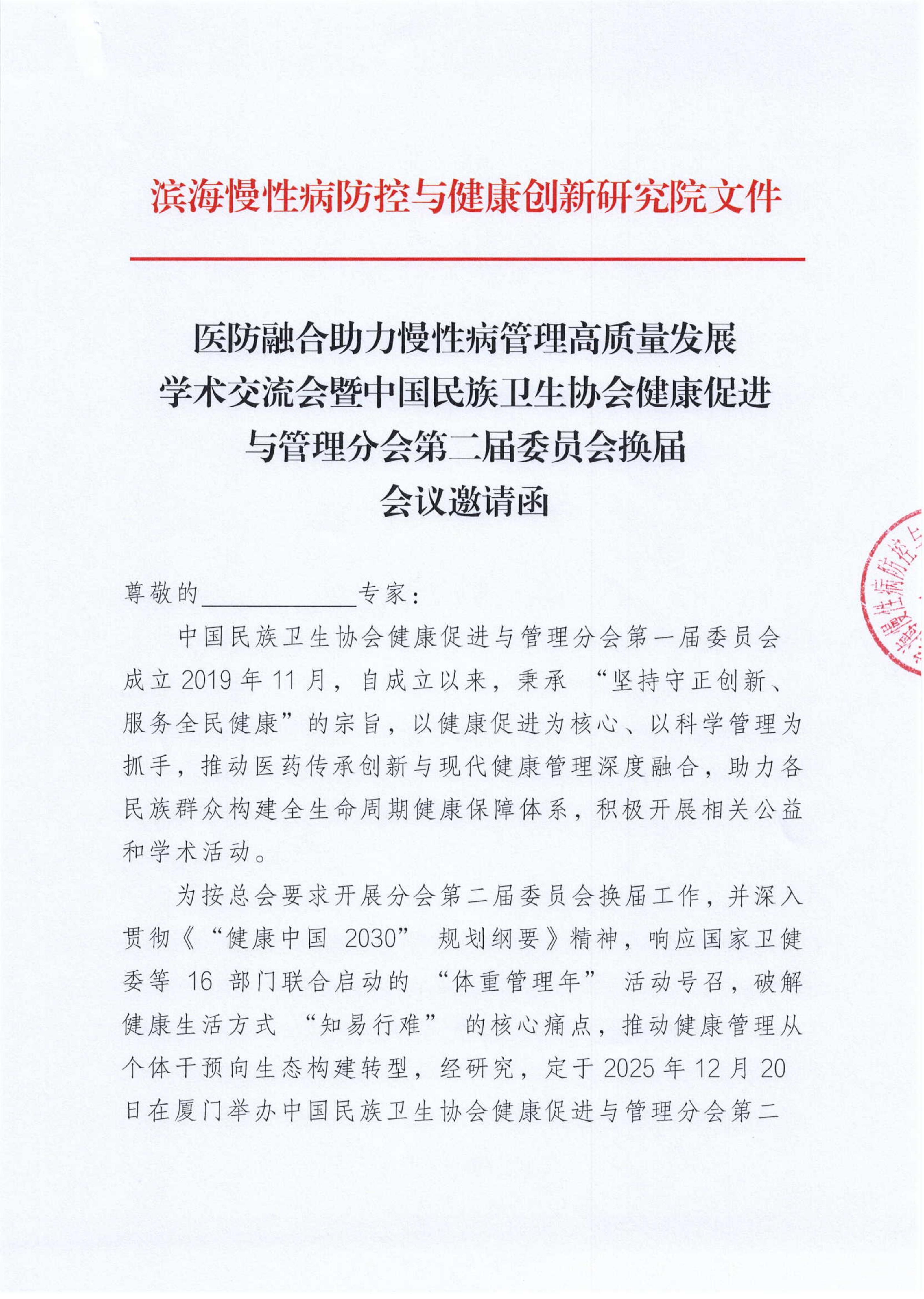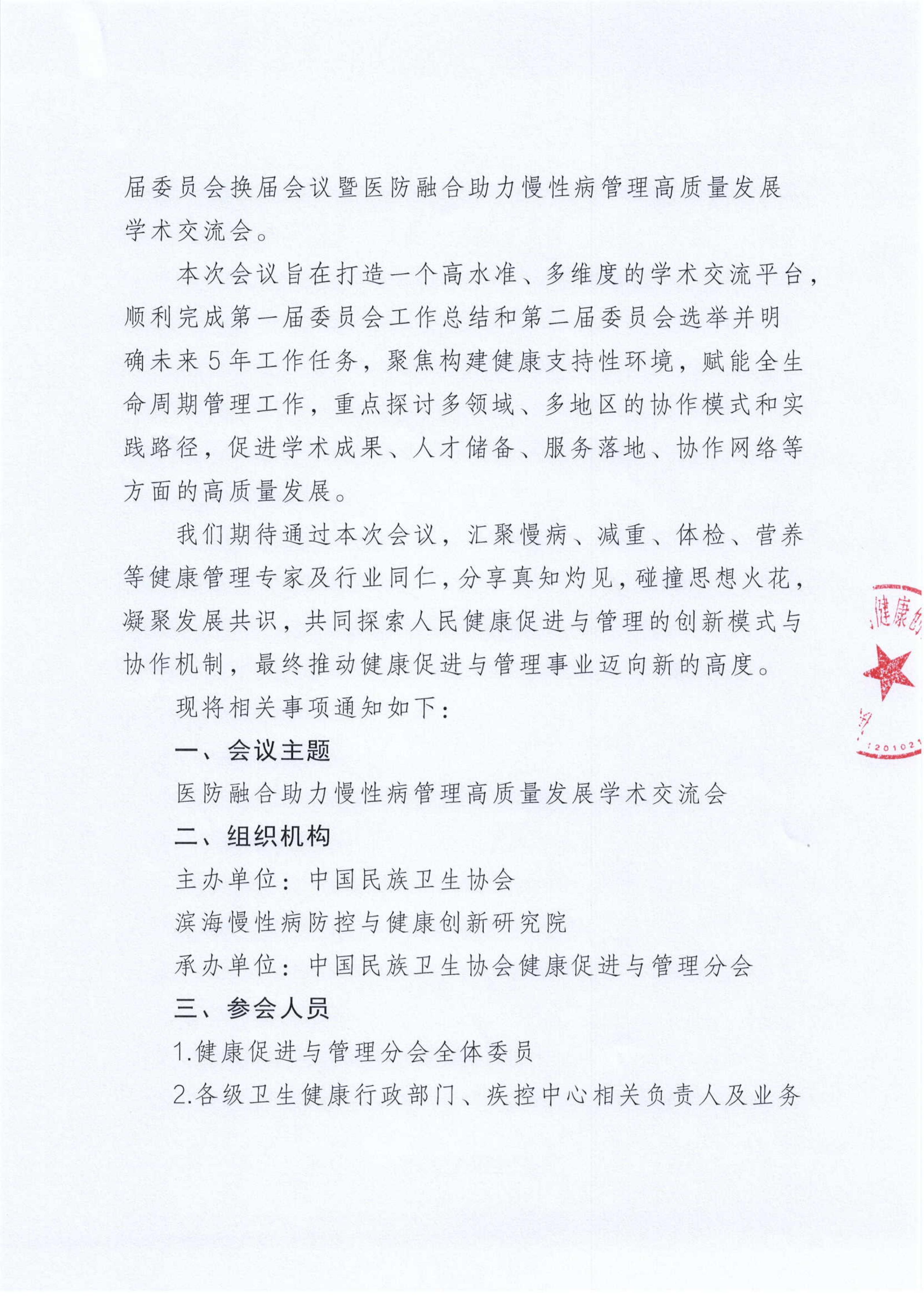 医防融合助力慢性病管理高质量发展学术交流会暨中国民族卫生协会健康促进与管理分会第二届委员会换届会议邀请函